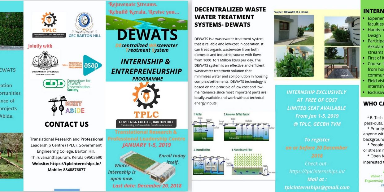 Winter internship for Engineers and all enthusiasts from January 1 - 5, 2019 in Translational Research & Professional Leadership Centre, Government Engineering College, Barton Hill, Trivandrum organized by TPLC jointly with ASAP (Additional Skill Acquisition Programme), ADMC (Akkulam Destination Management Council) & firm NestAbide.