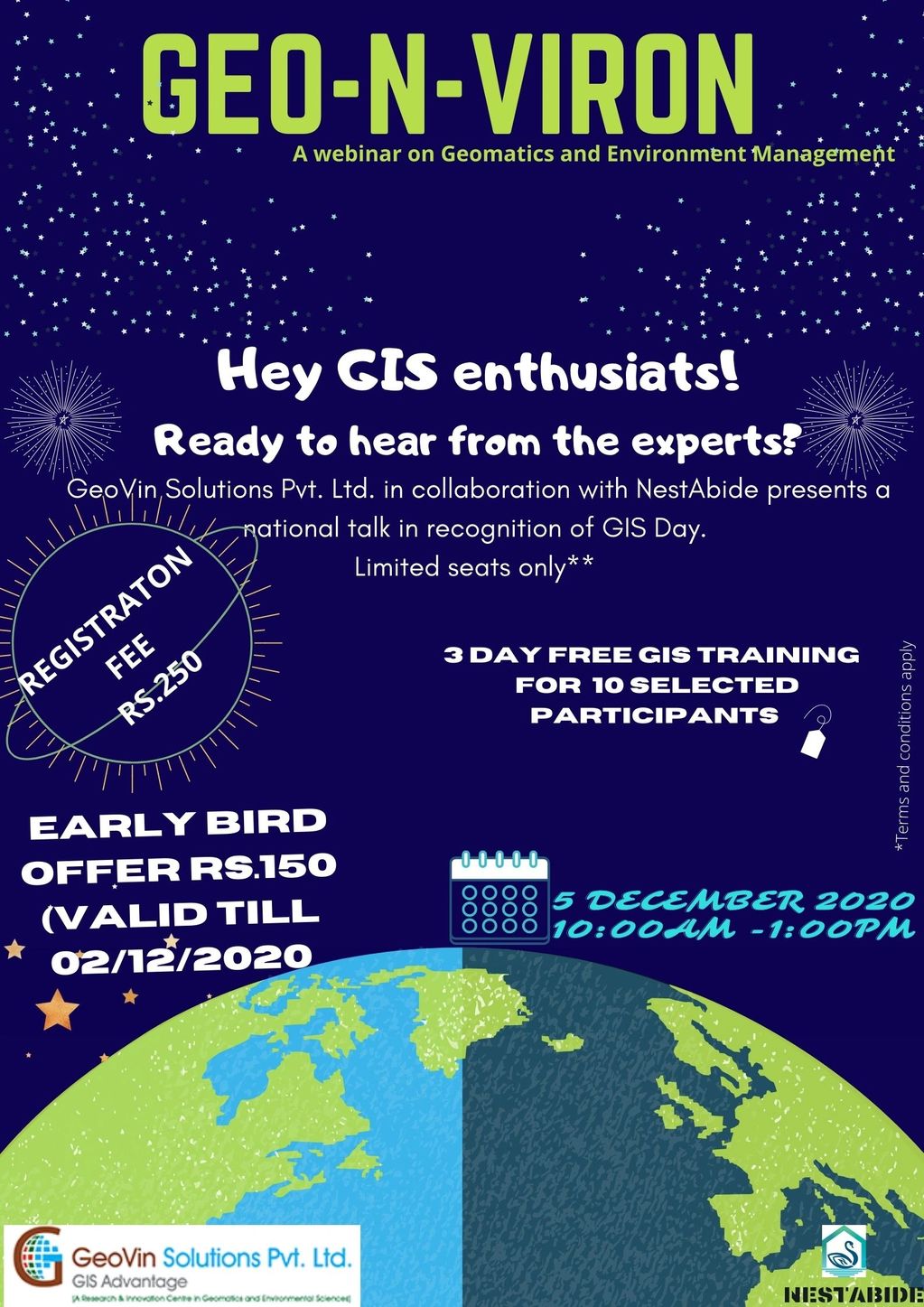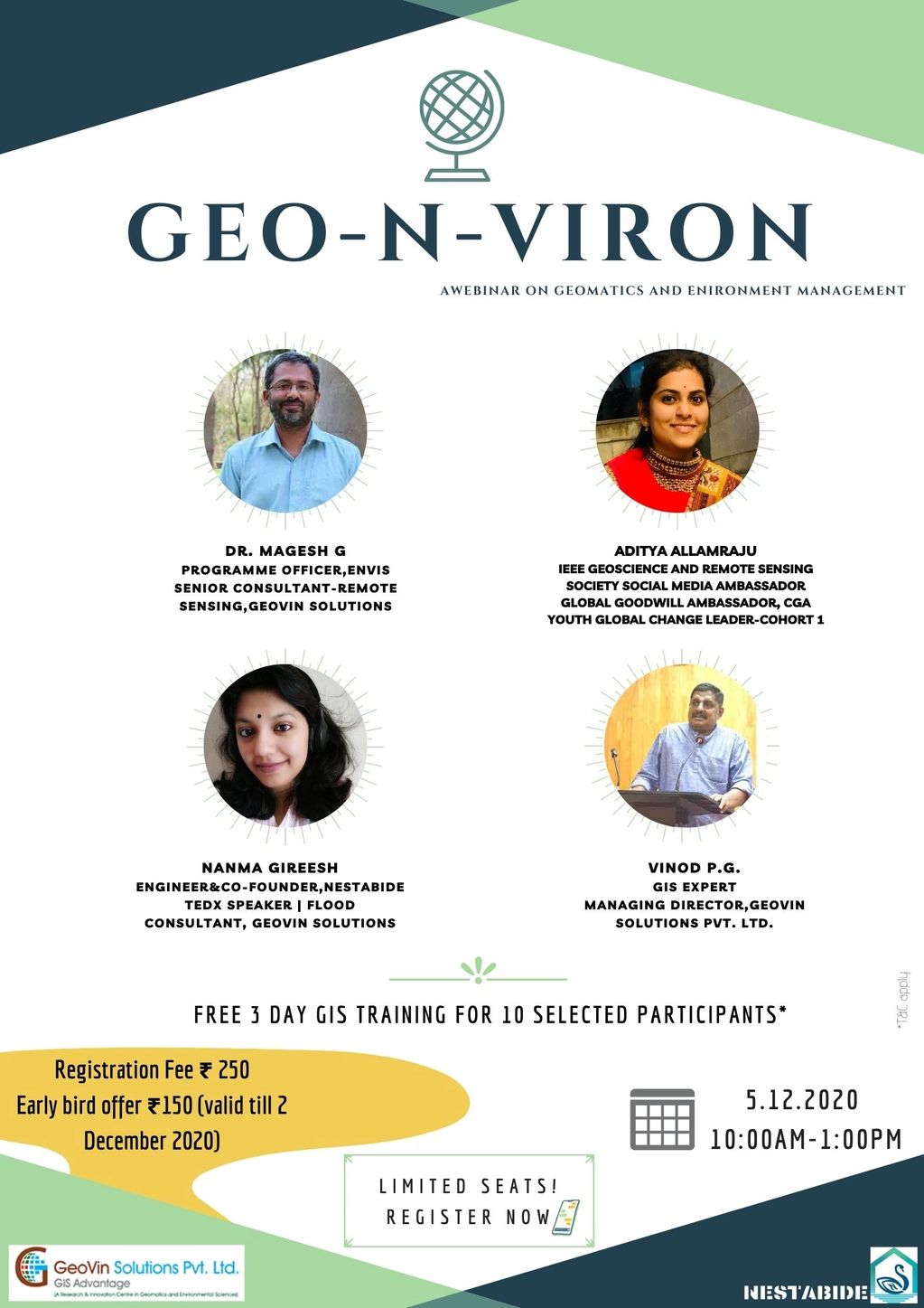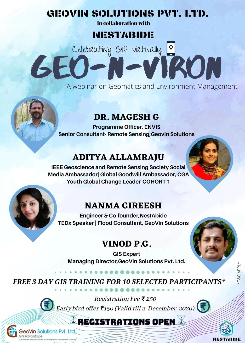 NestAbide in collaboration with GeoVin Solutions Pvt. Ltd. is organising an online event 'Geo-N-Viron : A webinar on Geomatics and Environment Management'.